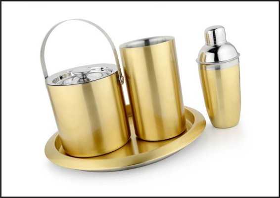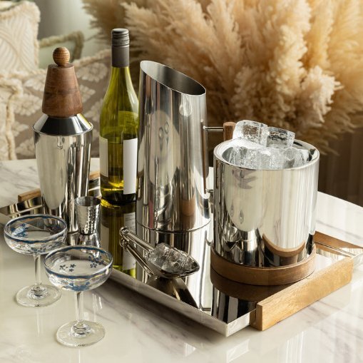 Ice bucket, wine chiller, cocktail shaker, bar tray