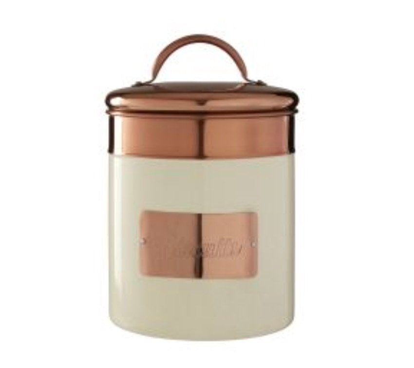 Finished with a rich powder-coated body and luxurious gold accents, the canister showcases a beautiful hammered design that adds texture and a sophisticated handcrafted look. The air-tight lid helps preserve freshness and crispness, keeping biscuits, cookies, and snacks protected from moisture and air.
