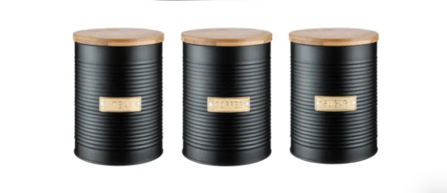 Finished with a smooth powder-coated surface and natural polish, the set offers a warm, sophisticated look that enhances any countertop. The air-tight canisters keep tea, coffee, and sugar fresh by protecting them from moisture and air, while the spacious bread box ensures hygienic storage for bread, buns, and baked goods.